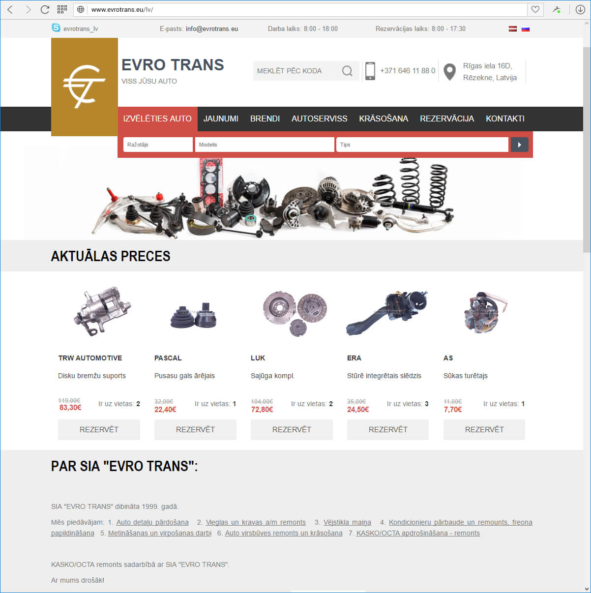 Izstrādāt mājaslapu auto detaļu veikals EVRO TRANS, ar iespēju rezervēt detaļas.